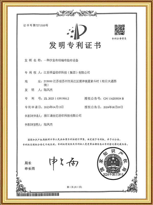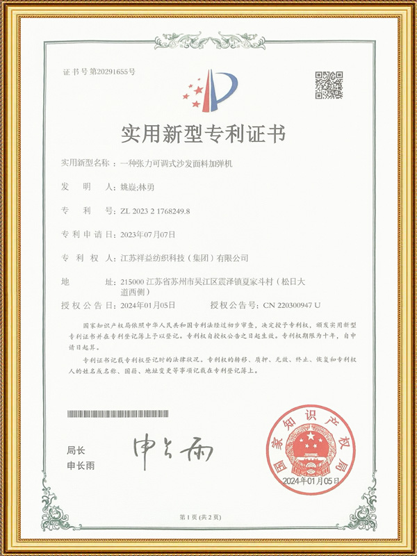 Oltre a vari telai come telai a getto d'acqua, telai a getto d'aria, telai a pinza, telai jacquard, ecc., l'azienda dispone anche di 12 attrezzature speciali per torcitura, 30 unità di taglio per velluto, 2 centri di lavorazione compositi e 10 dispositivi speciali per filati fantasia. Può realizzare lo sviluppo indipendente dei filati e ha le capacità di sviluppo e produzione di vari tipi di tessuti per divani sul mercato.